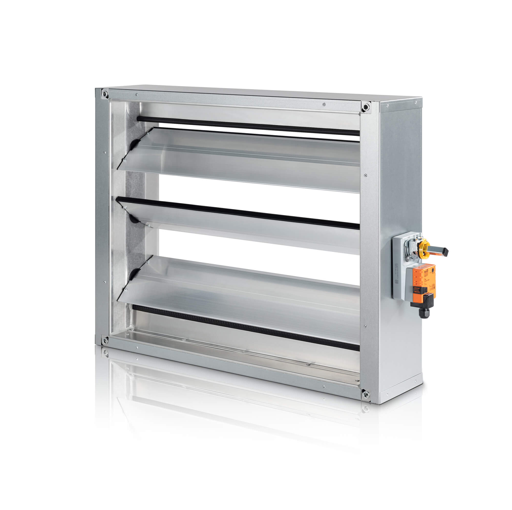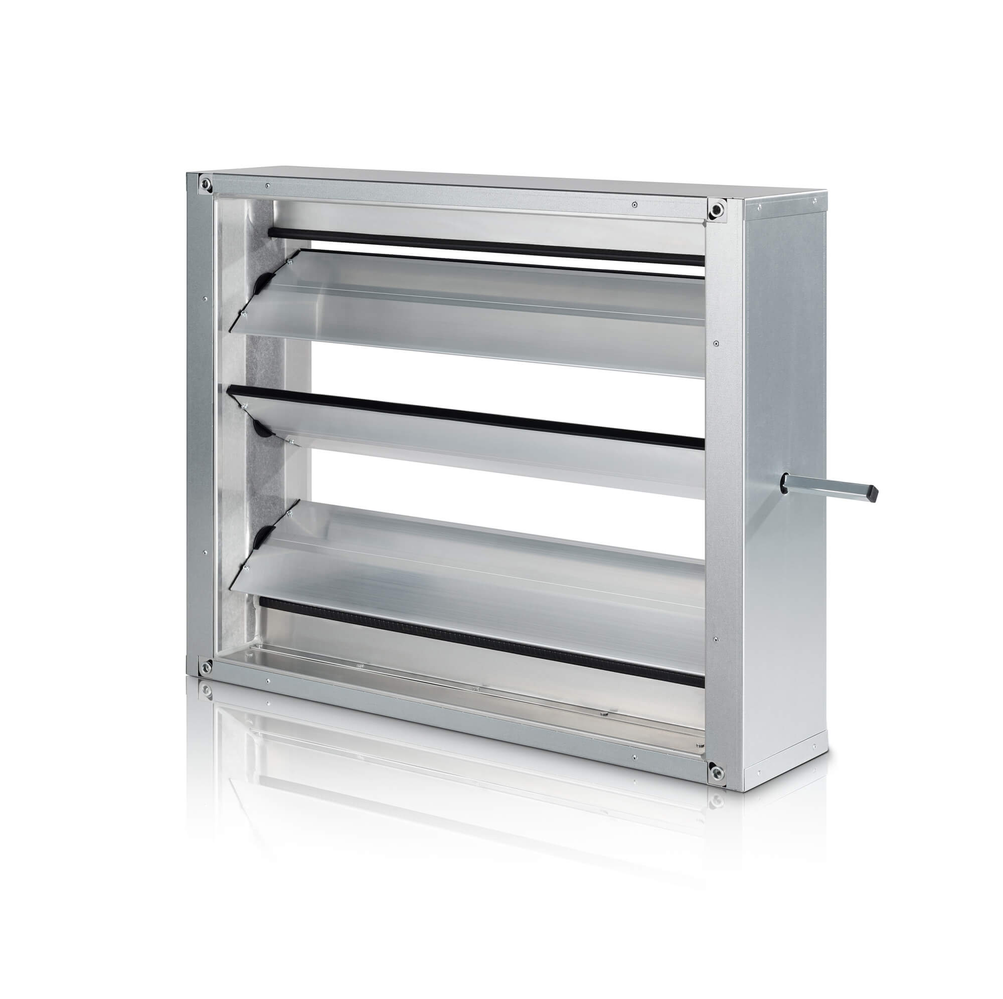 • Kopplung der Lamellen mit Zahnrädern aus Spezialkunststoff, verdeckt geführt und staubgeschützt gelagert. Antriebsachse für einen Klappenstellmotor seitlich aus dem Gehäuse geführt Vorbereitet für den direkten Anschluss von Luft-Kanalprofilen 30 mm, Eckverbinder mit metrischem Gewinde M10